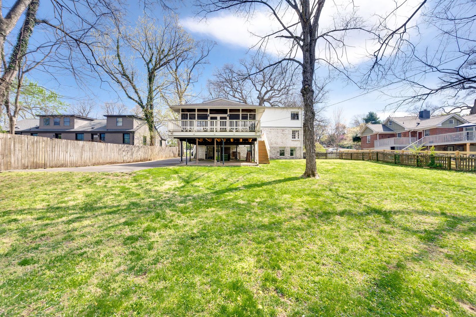 Beautiful 4BD/3.5BA home in the heart of Green Hills. This home blends classic charm with modern updates, including a finished basement and a large screened-in deck with 3-car covered parking below. Features a spacious, fenced backyard—ideal for entertaining. Renovated primary suite on the upper level with updated bath and ample closet space. Convenient to shopping, dining, and all that Green Hills has to offer. Pets negotiable with $350 non-refundable fee per pet.